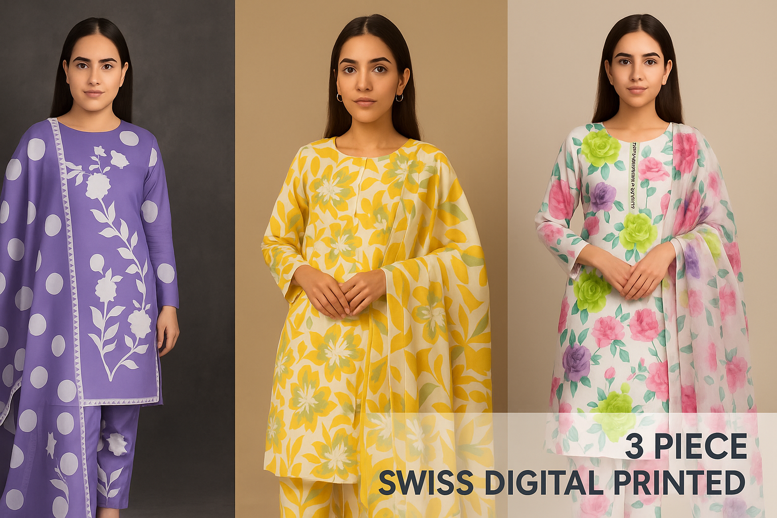 Beige & Blue Floral Unstitched 3-Piece Suit